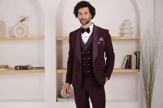 Classic Wine Tuxedo Suit