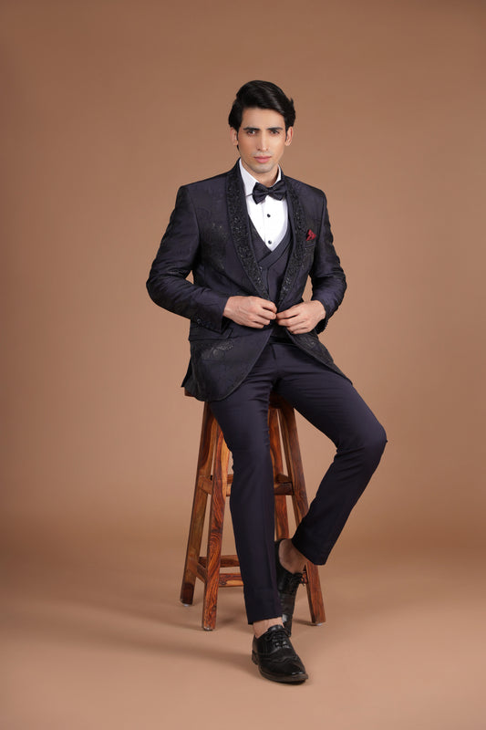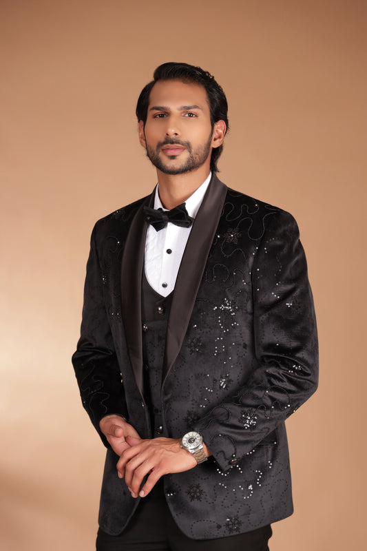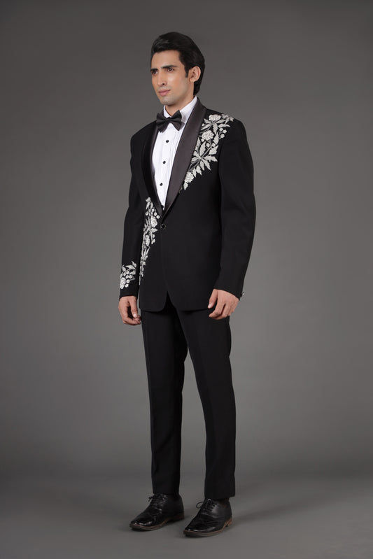 Pitch Black Embroidered Tuxedo Suit