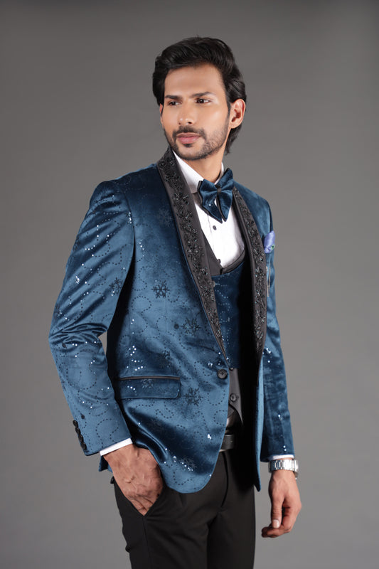 Dazzle Blue Embellished Tuxedo