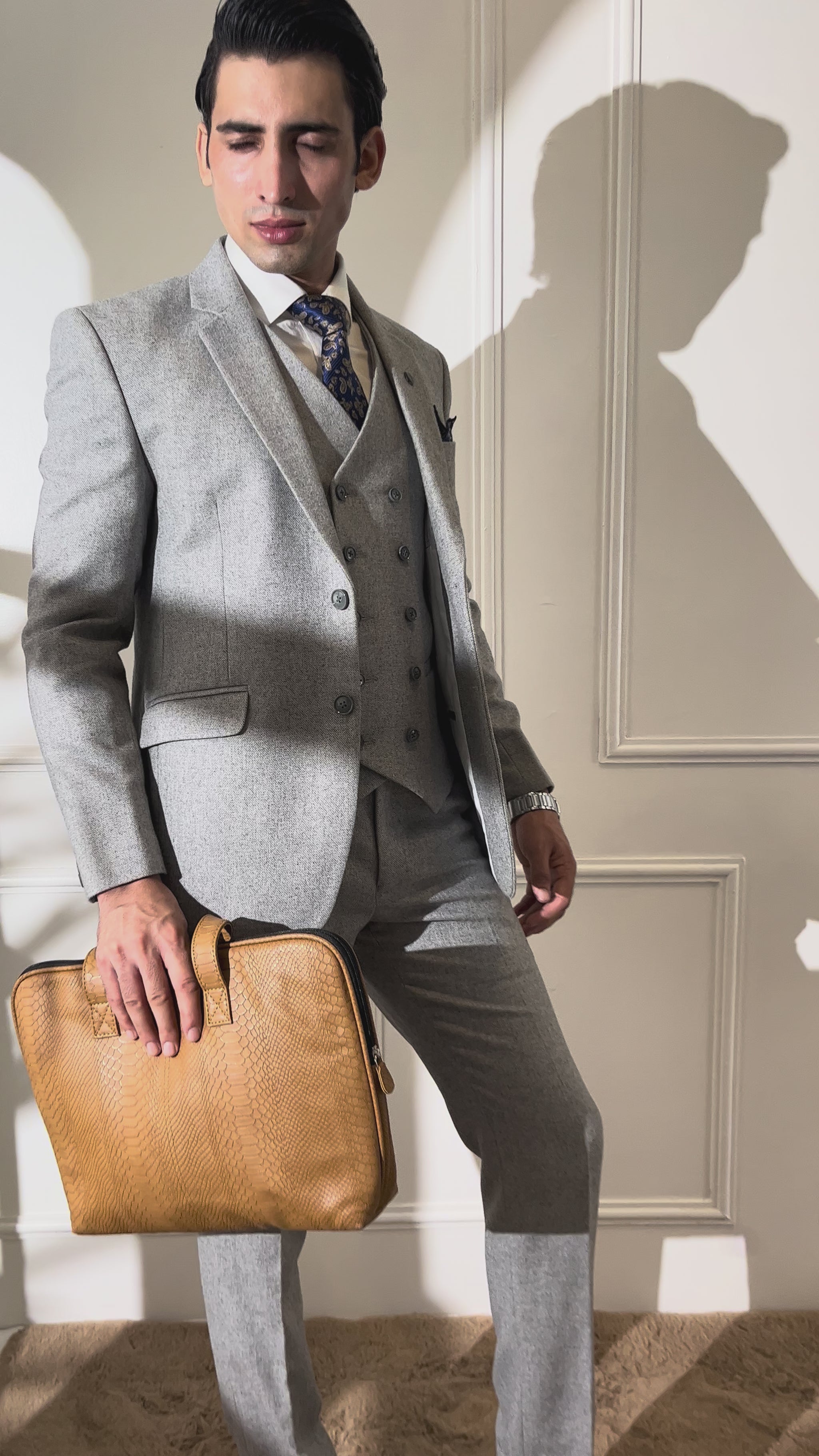 Step into refined sophistication with the Cloud Grey Tweed Suit from Zoop Men. Expertly tailored from premium tweed fabric, this suit combines timeless charm with modern craftsmanship. The textured grey finish exudes elegance, making it a standout choice for weddings, formal gatherings, or winter celebrations.
